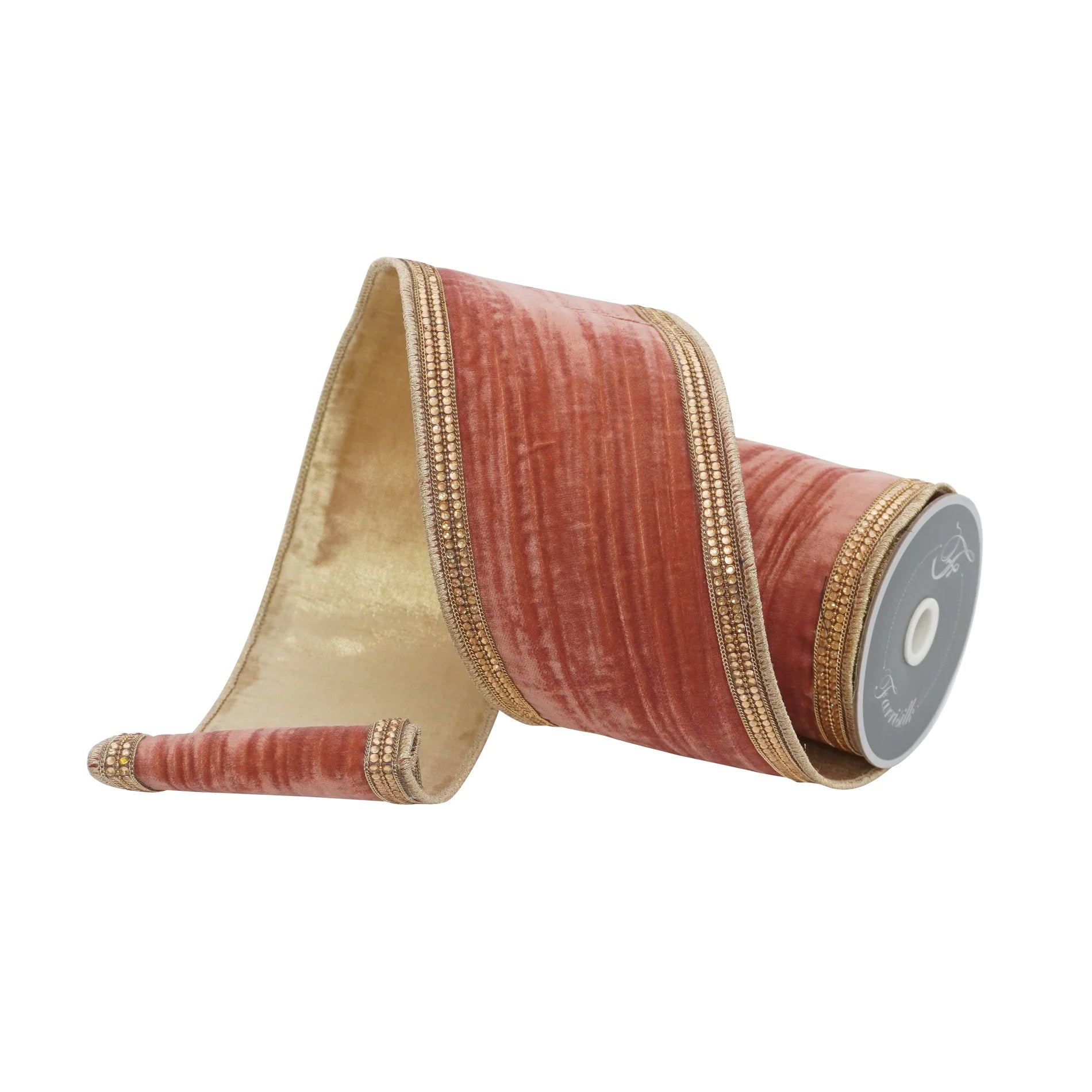 Ribbon is constructed with thick, wired edge and is made with a secondary fabric to provide shape and structure.