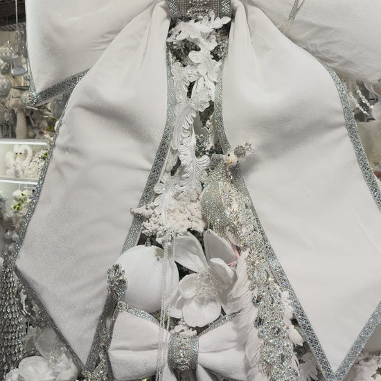 Design-crafted by Evis Design, these beautiful blinged out bows are a great way to elevate your decor. The bows’ soft velvety touch and the blings’ sparkling shimmer are a great combination sure to draw attention to your own decorative vision!