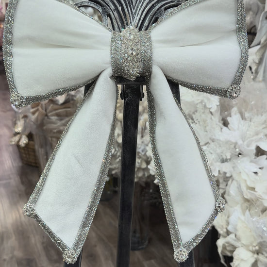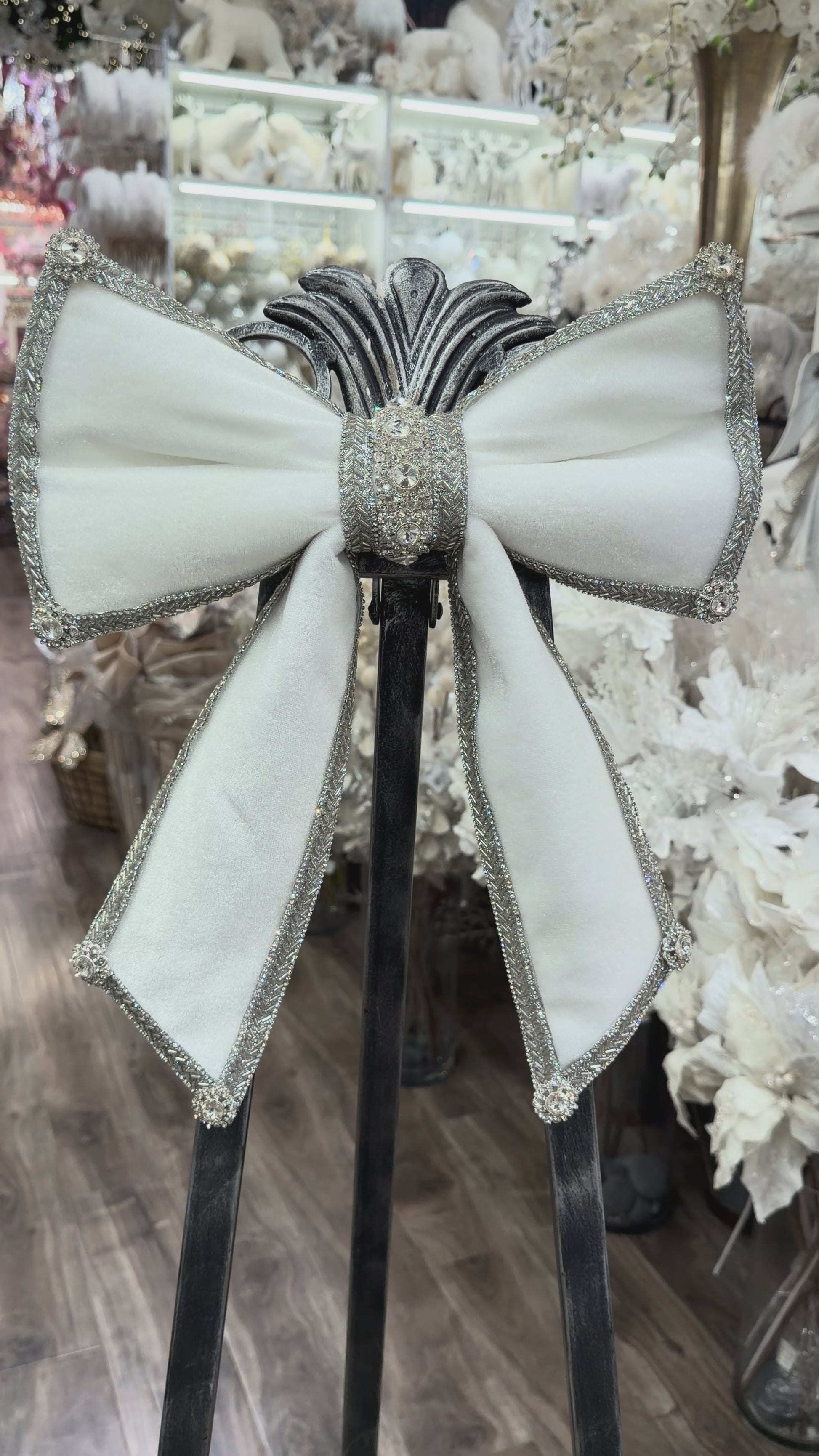 Design-crafted by Evis Design, this beautiful blinged out bow is a great way to elevate your decor. The bow’s soft velvety touch and the bling’s sparkling shimmer are a great combination sure to draw attention to your own decorative vision!